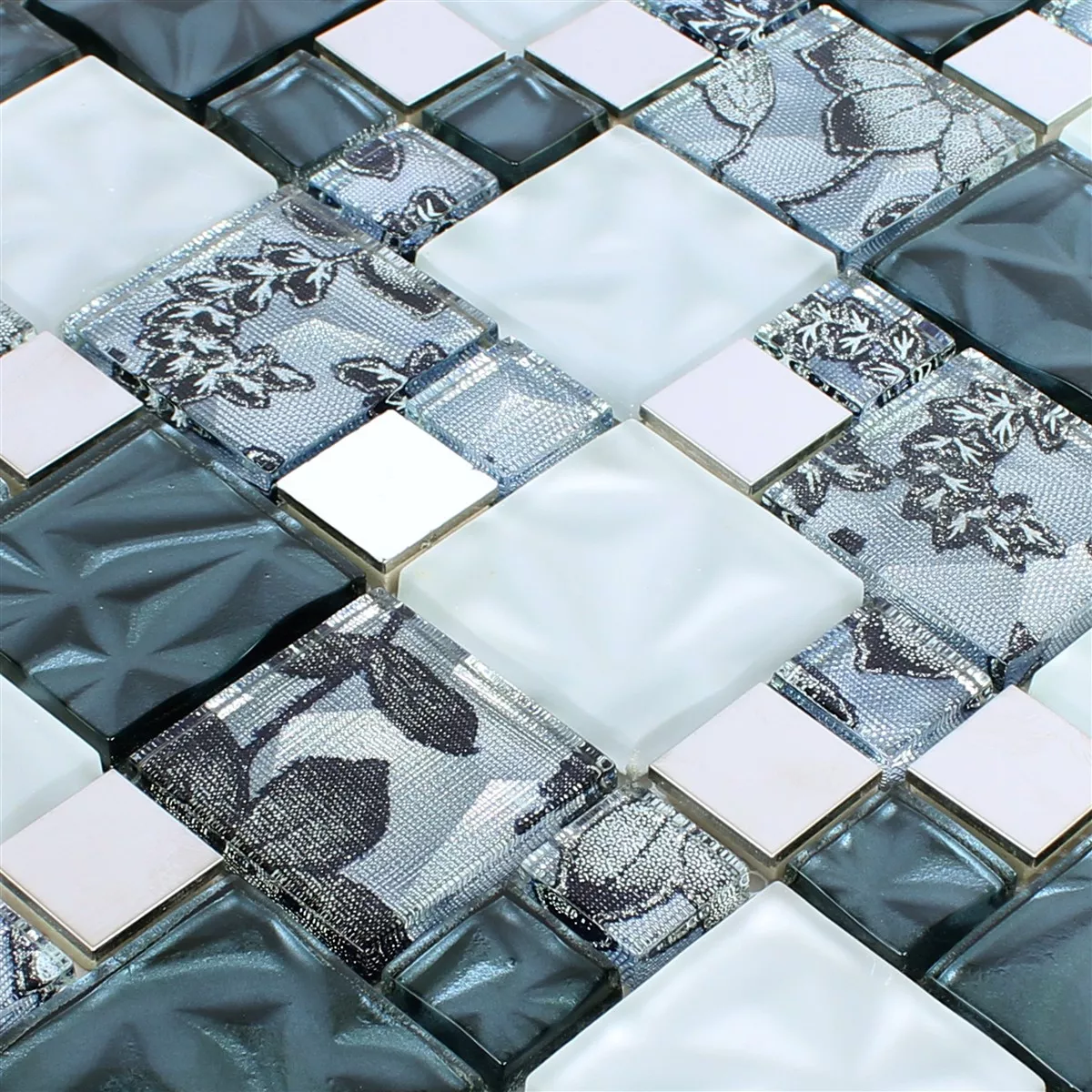 Échantillon Verre Métal Acier Inoxydable Mosaïque Carrelage Zadar Gris Bleu