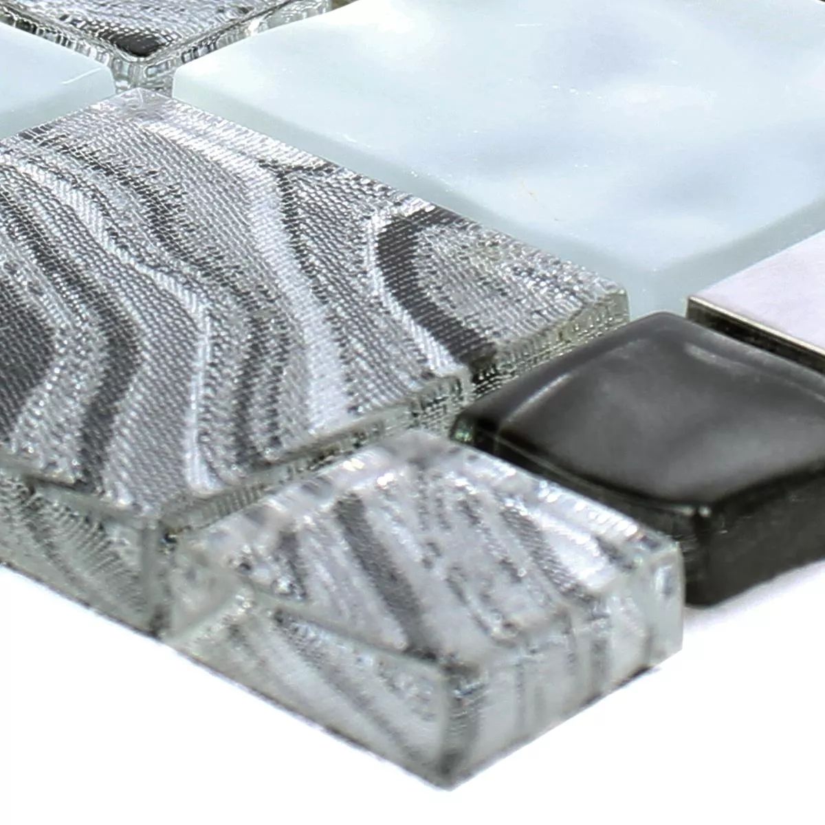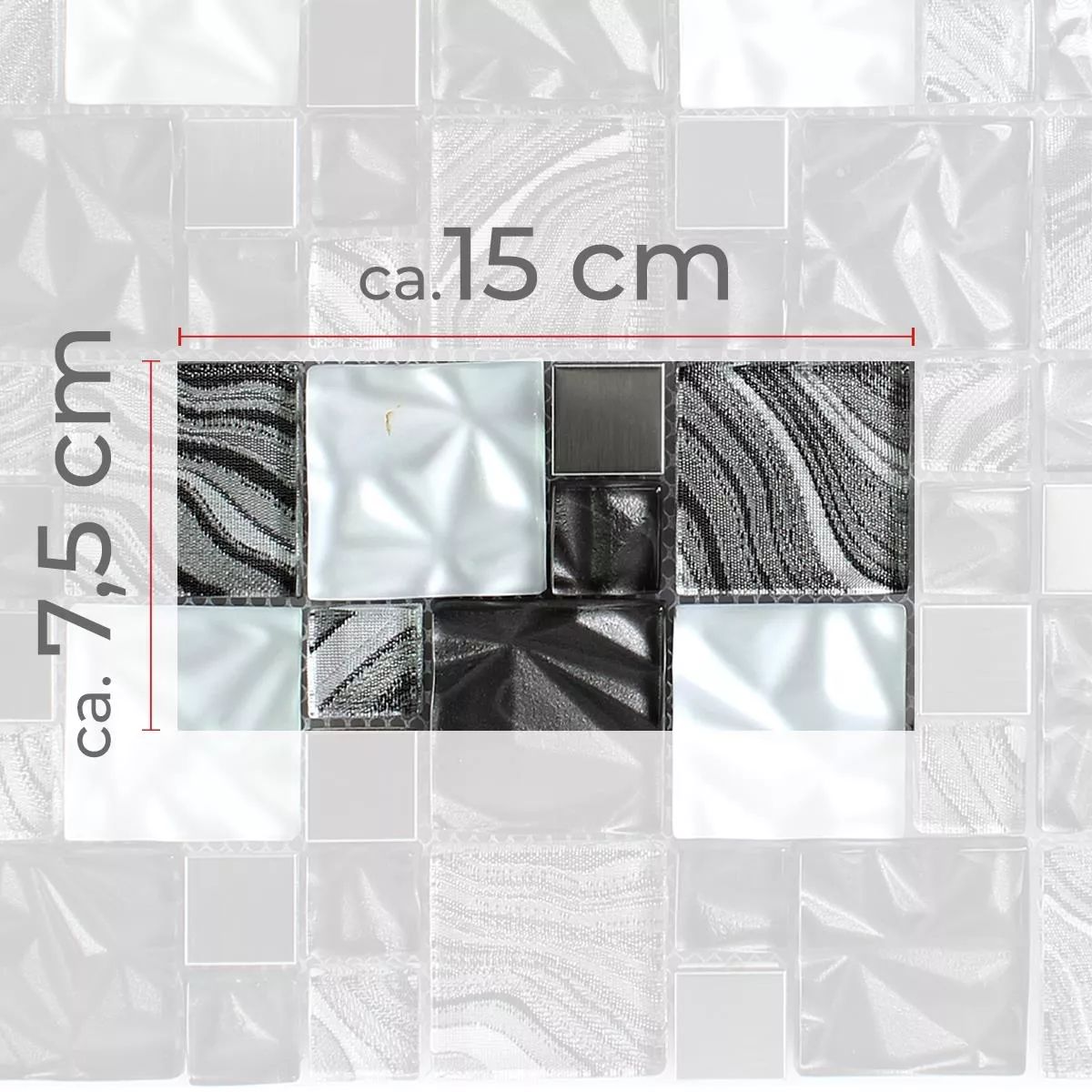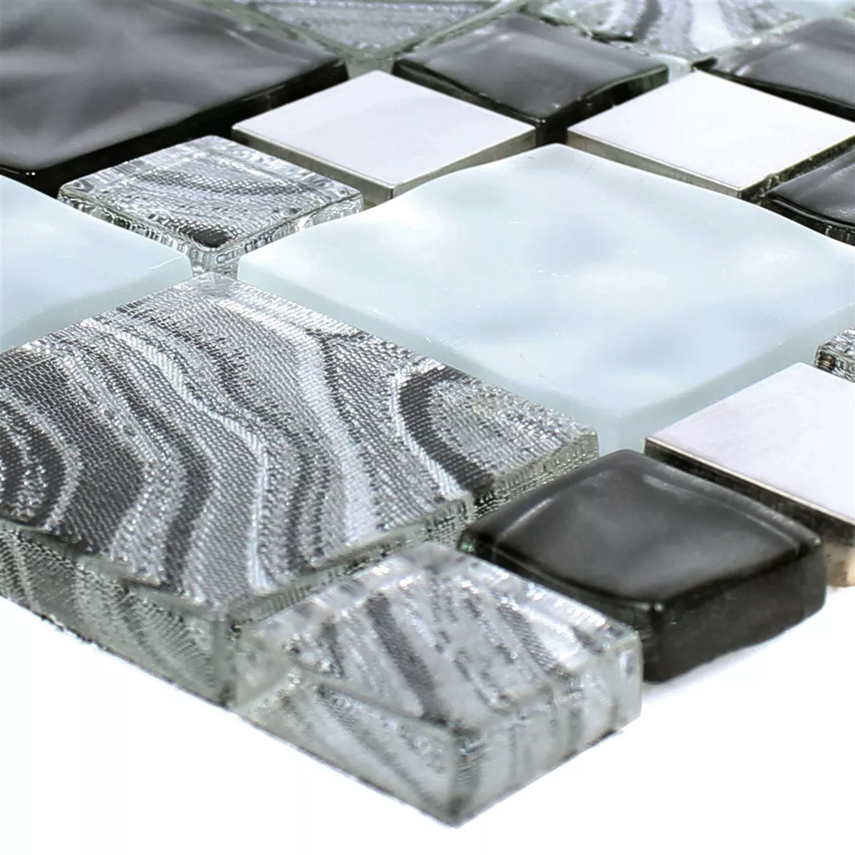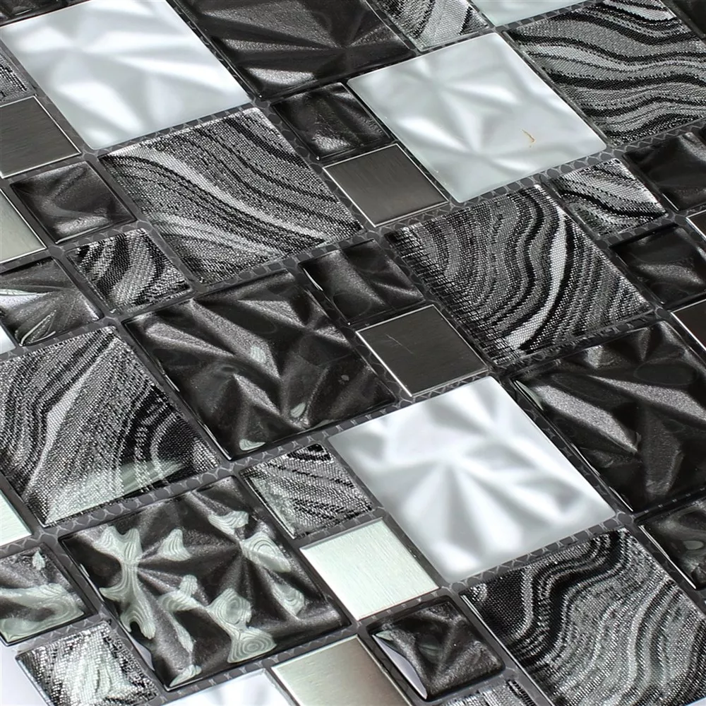 Échantillon Verre Métal Acier Inoxydable Mosaïque Carrelage Zadar Gris Noir