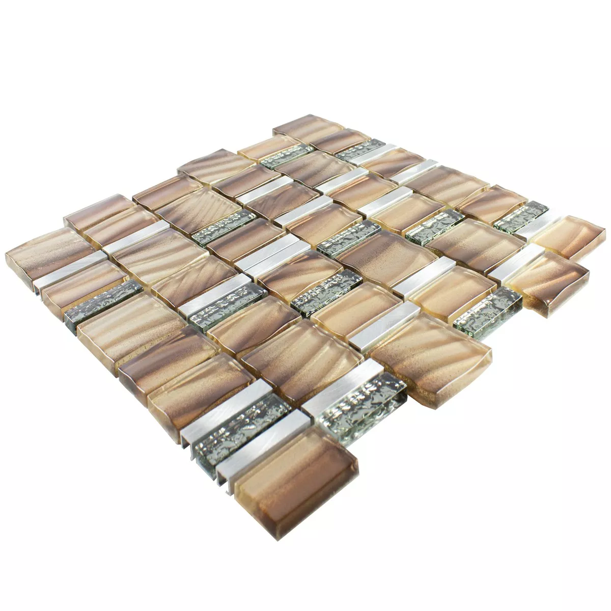 Échantillon Verre Métal Mosaïque Carrelage Union Brun Argent