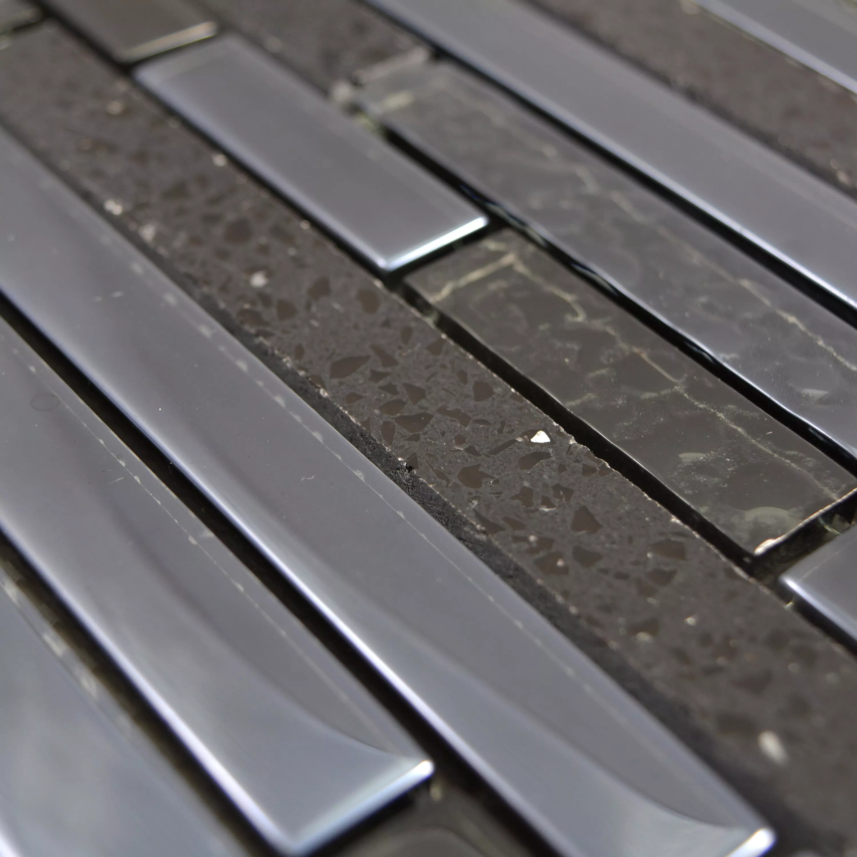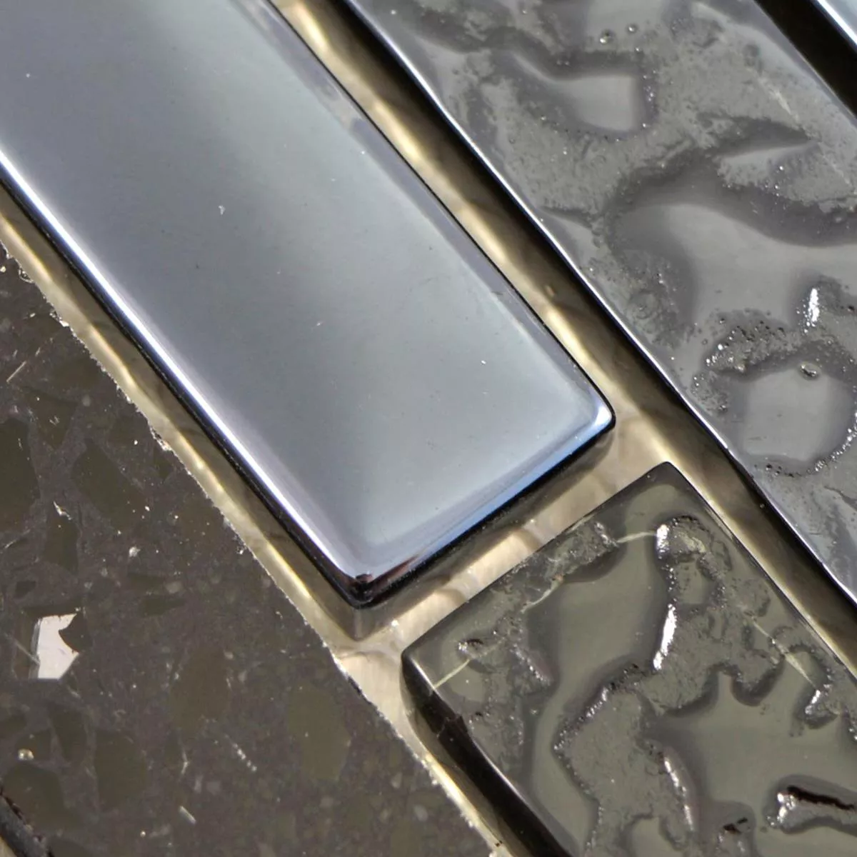 Échantillon Verre Pierre Acier Inoxydable Mosaïque Wilmont Noir Argent