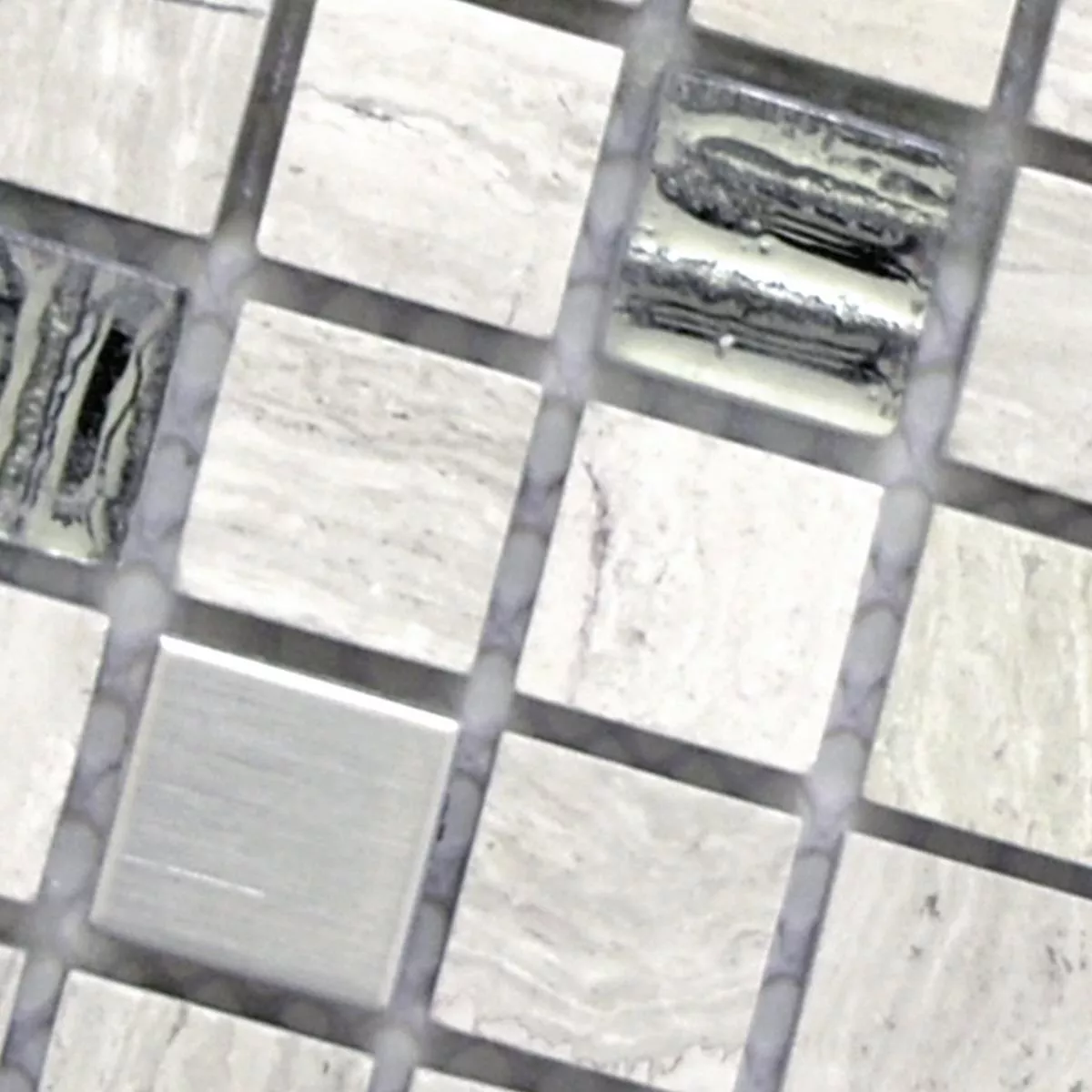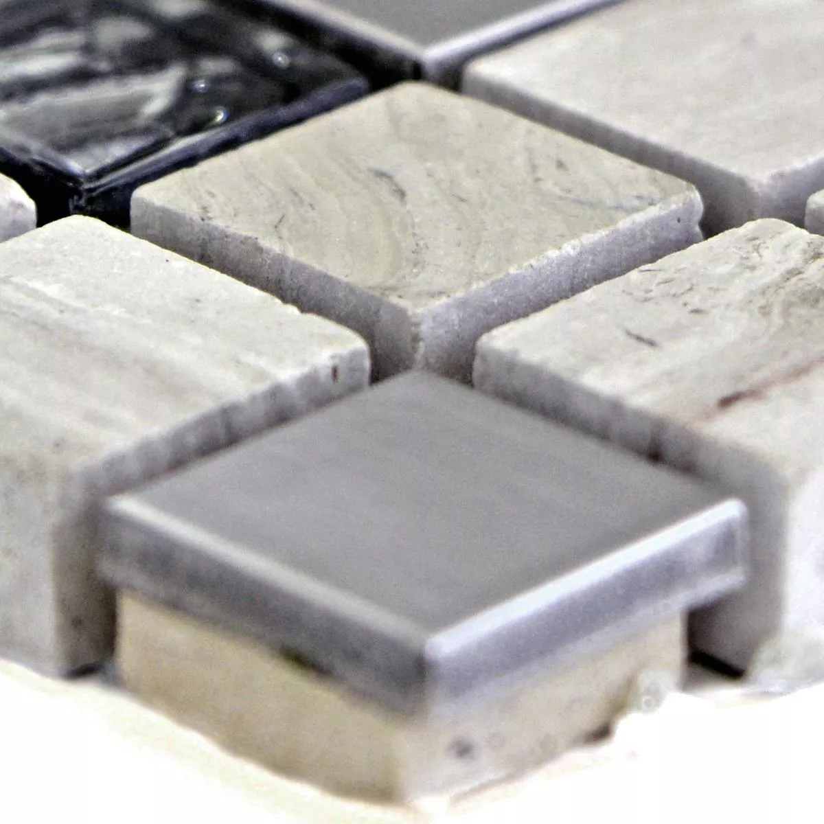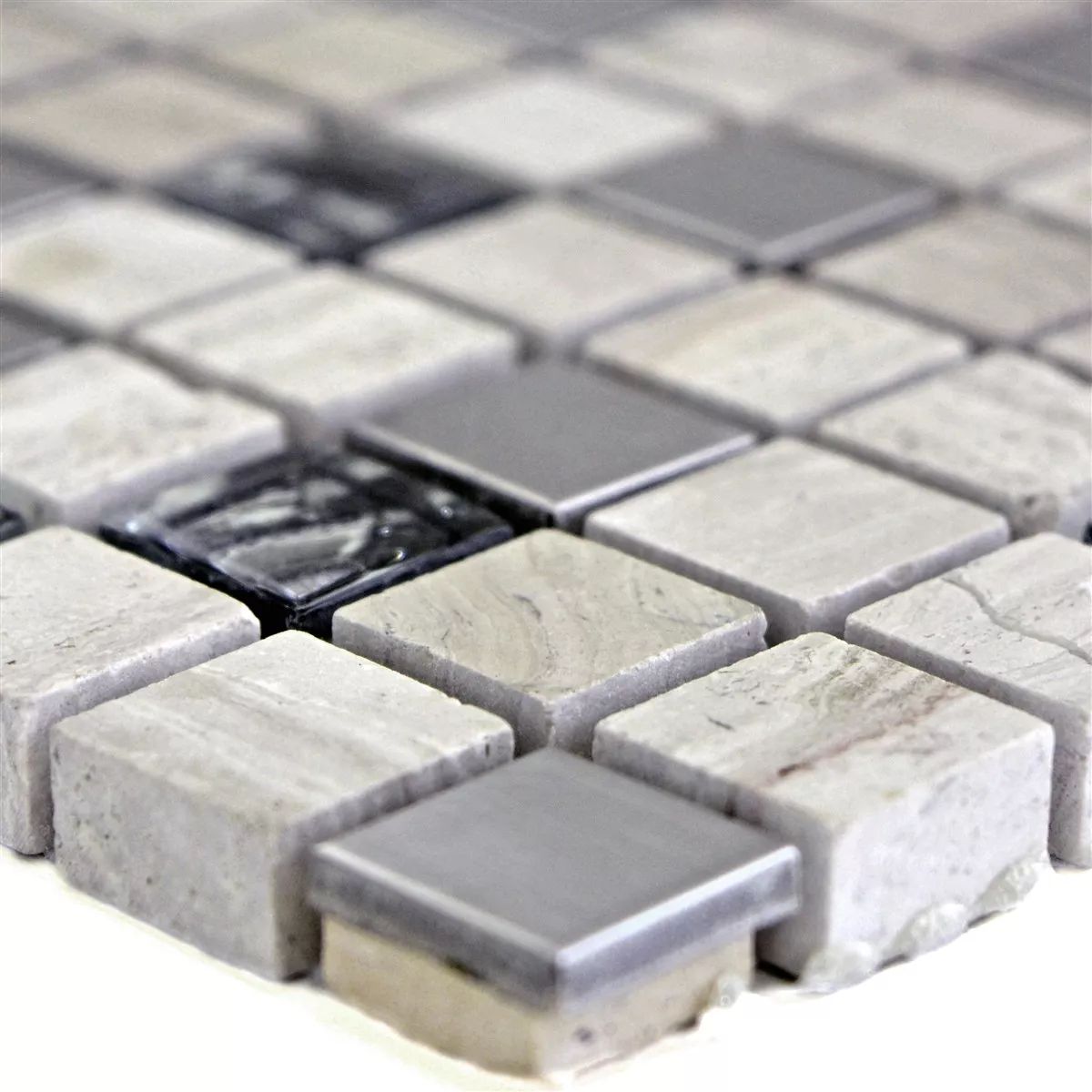 Échantillon Verre Pierre Acier Mosaïque Carrelage Elektra Gris Carré