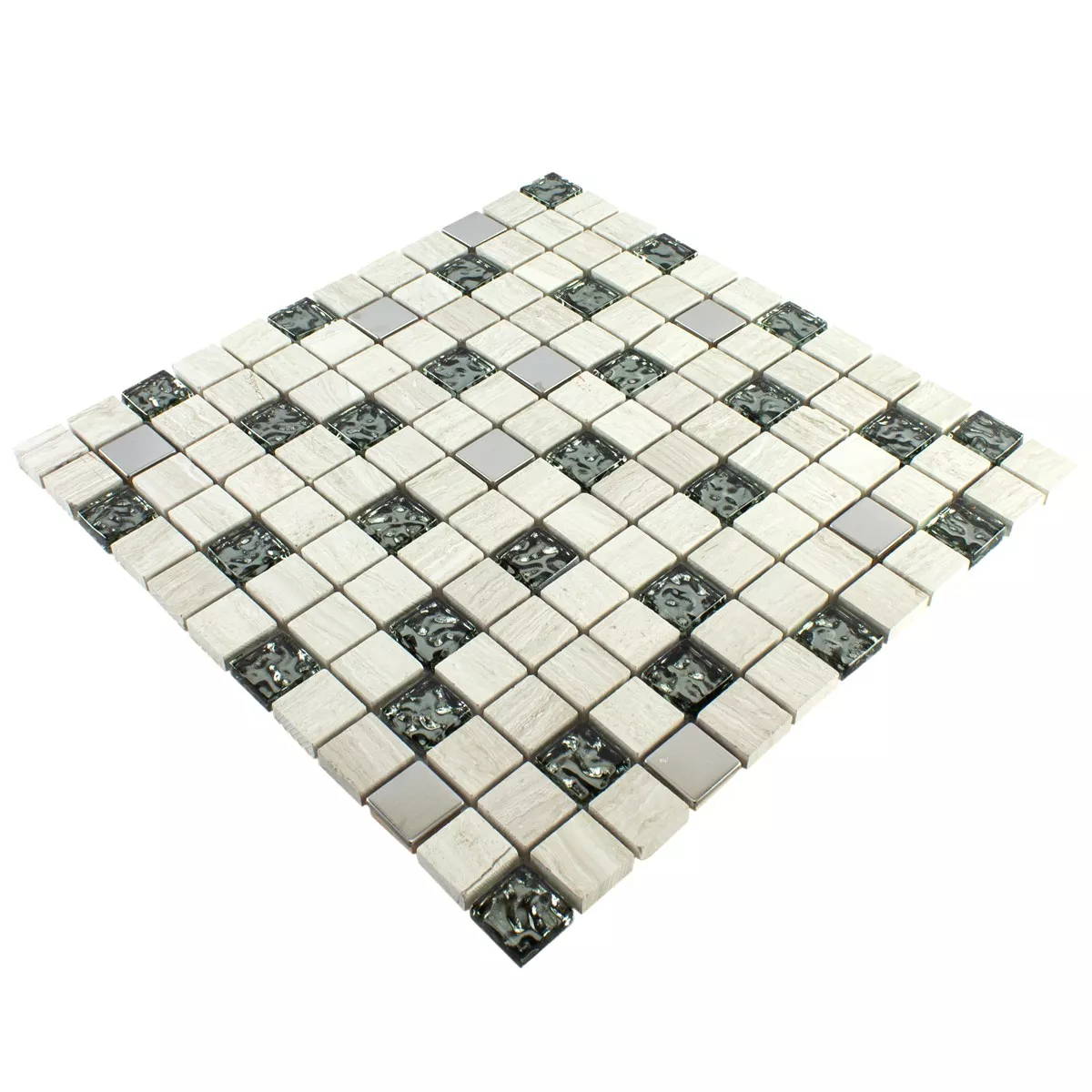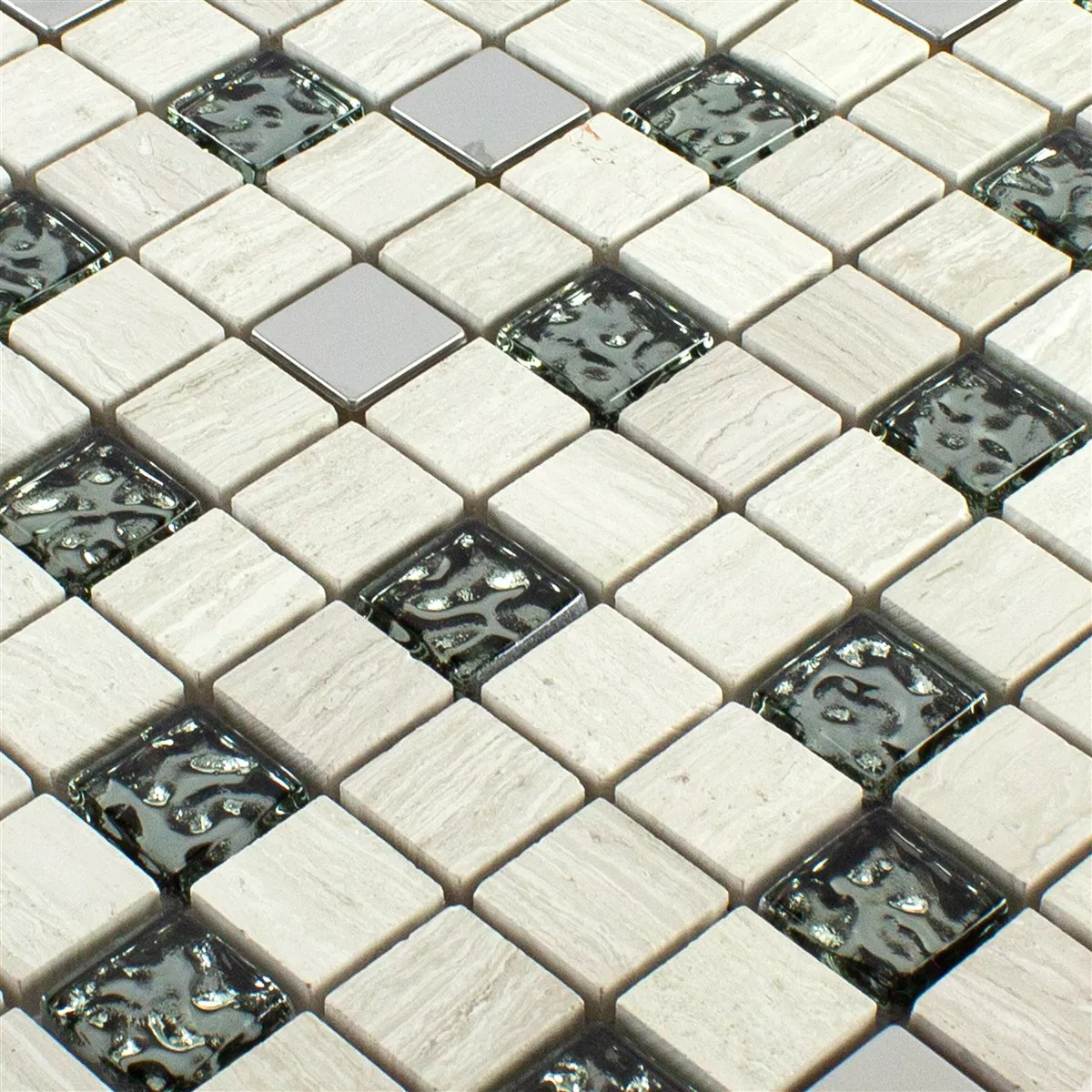 Échantillon Verre Pierre Naturelle Métal Mosaïque Carrelage Fulda Gris Argent