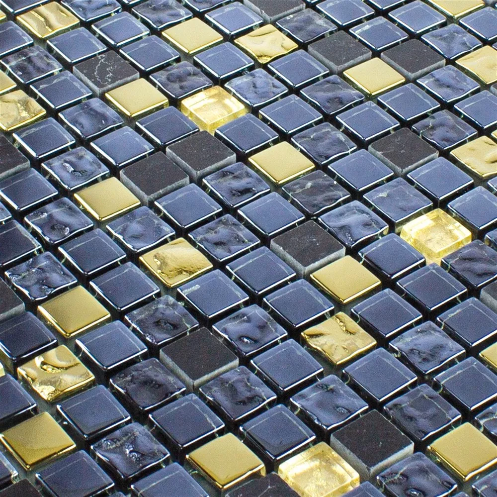 Échantillon Verre Pierre Naturelle Mosaïque Carrelage Cooktown Noir Or