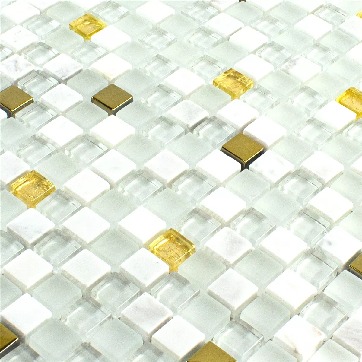 Échantillon Verre Pierre Naturelle Mosaïque Carrelage Maryot Blanc Or