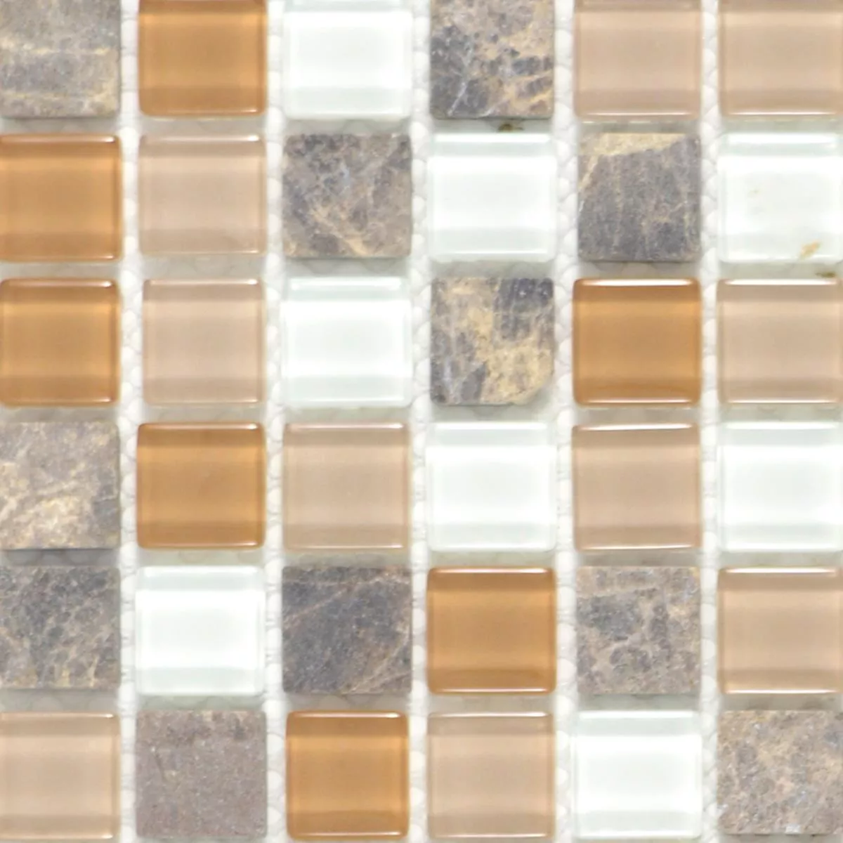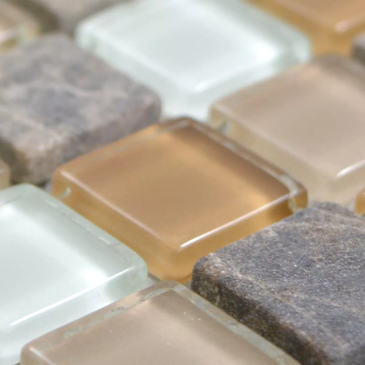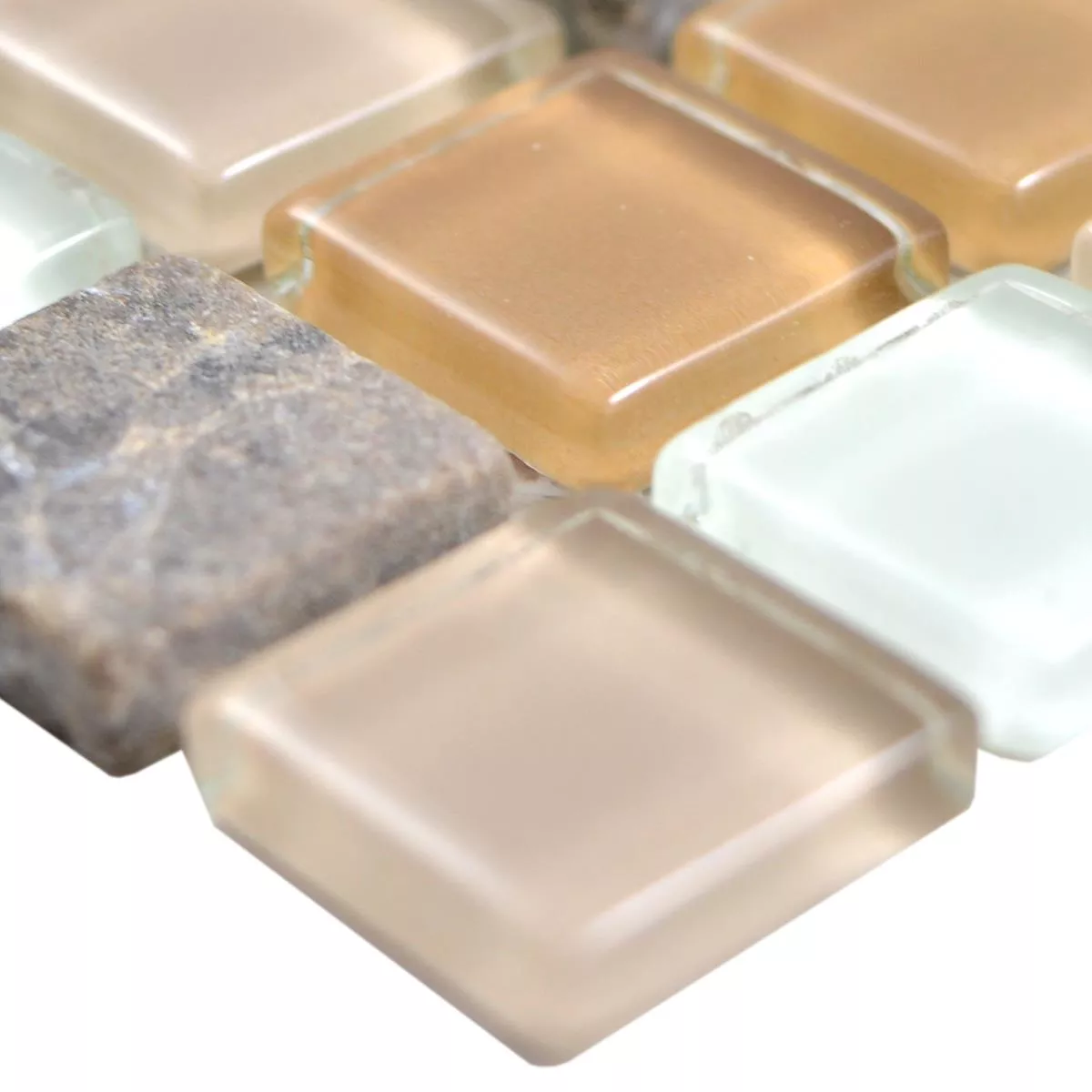 Échantillon Verre Pierre Naturelle Mosaïque Carrelage Zekova Beige Brun Blanc