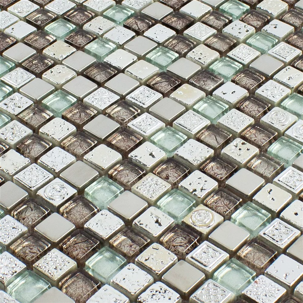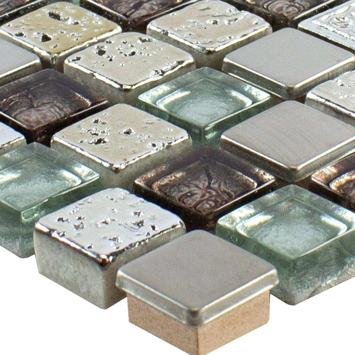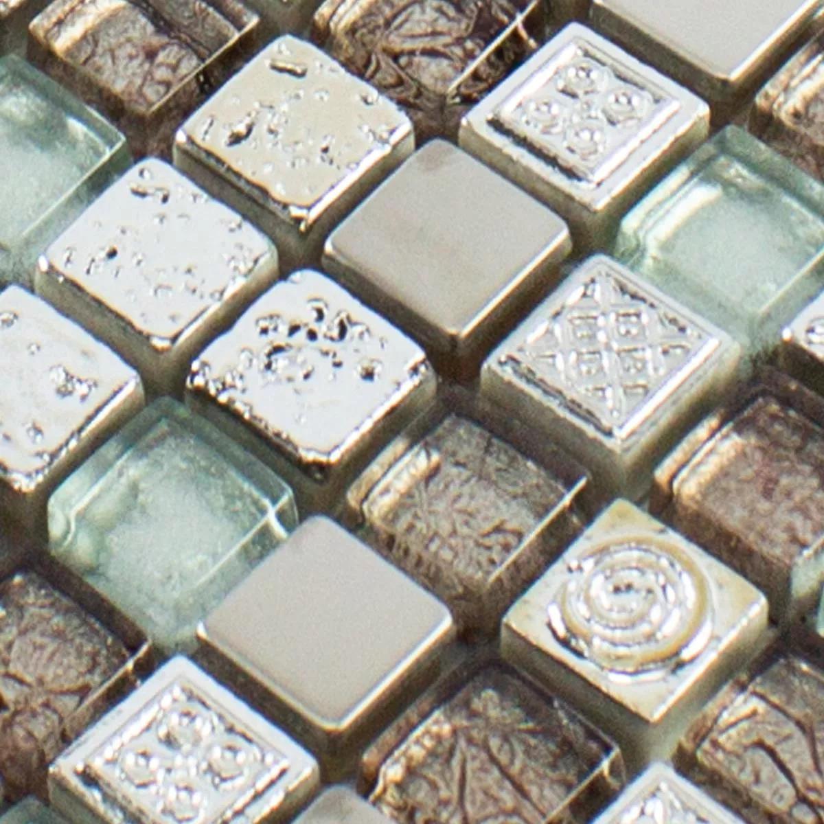 Échantillon Verre Résine Métal Mosaïque Carrelage Falco Brun Argent