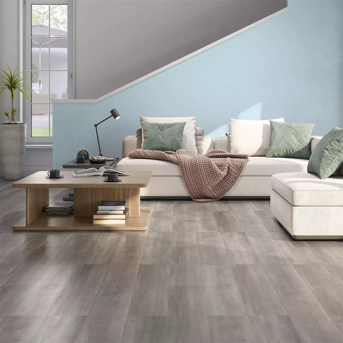Échantillon Vinyle Carrelage Sol Et Mur Système De Clic Greywood Gris 17,2x121cm