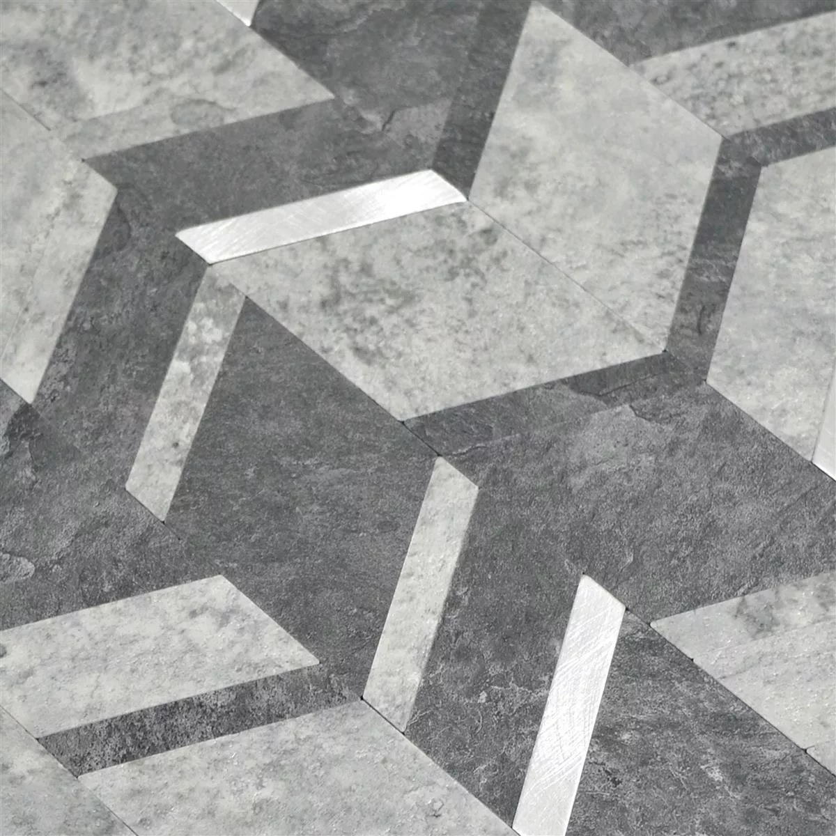 Échantillon Vinyle Mosaïque Carrelage Meridian Pierre Optique Noir Argent