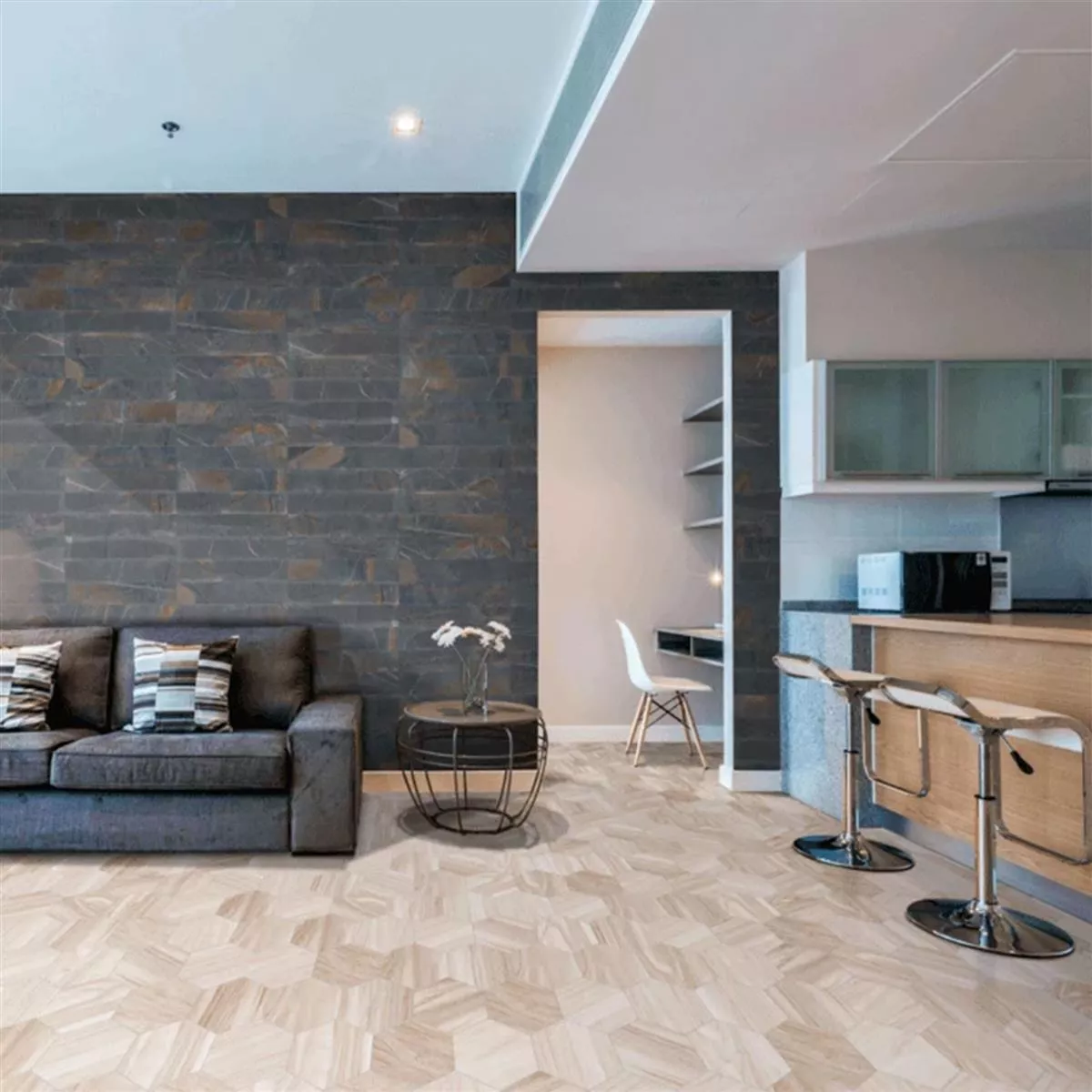 Les carreaux Hexwood impressionnent par leur surface mate et leur aspect bois authentique, qui confèrent à chaque pièce une atmosphère chaleureuse et accueillante. Avec un indice d'abrasion de 2, ils sont idéaux pour les zones à trafic moyen et conviennent parfaitement aux cuisines, salles de bains, douches et autres zones humides ainsi qu'aux espaces de vie intérieurs.