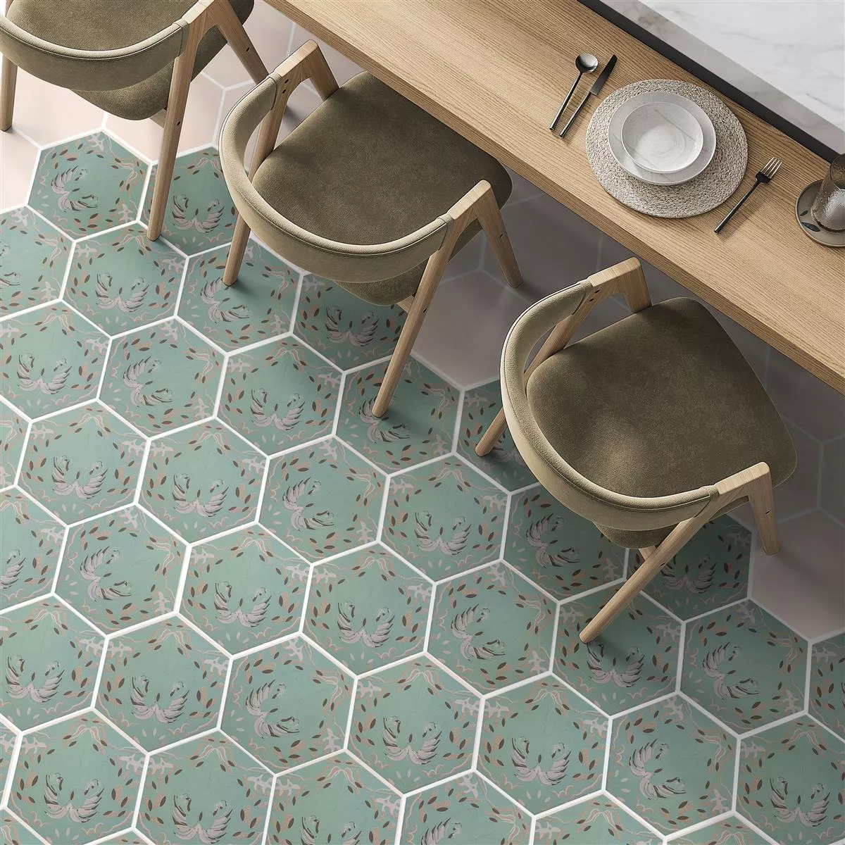 Les carreaux en grès cérame « Modena Hexagon Decor 5 » offrent une fusion harmonieuse entre fonctionnalité et design esthétique. D'une épaisseur de 10 mm, ils sont idéaux pour les zones humides, les douches, les salles de bains, les cuisines, les salons et les espaces intérieurs. La surface mate et le motif floral vert confèrent aux carreaux une élégance intemporelle.
