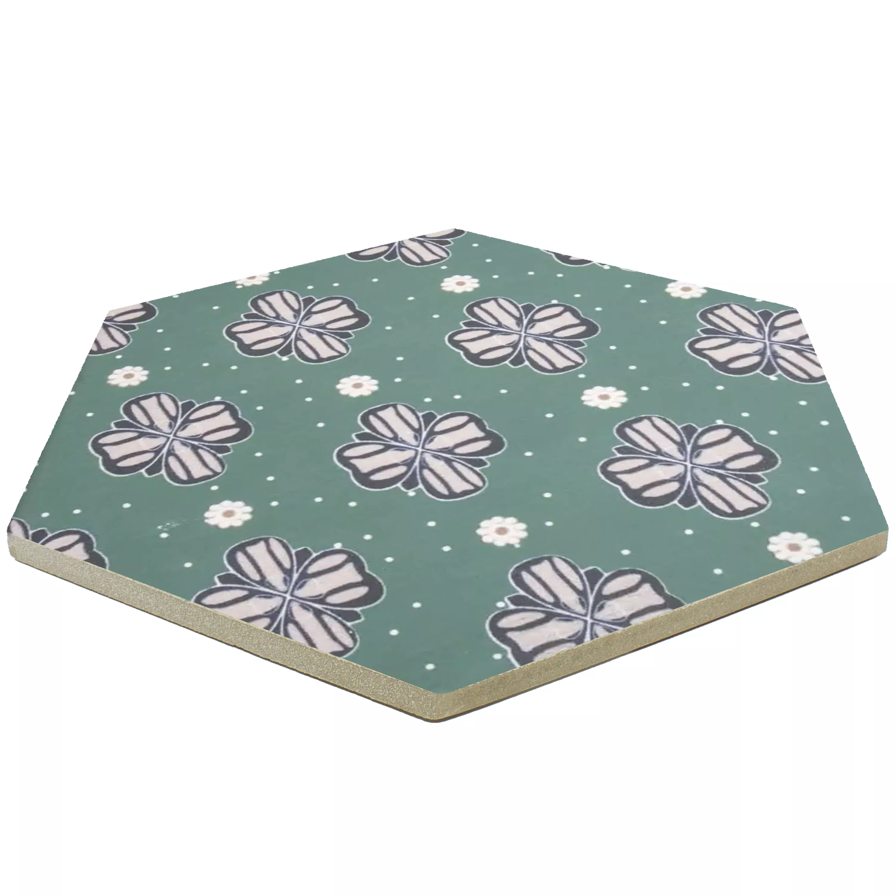 Les carreaux en grès cérame « Modena Hexagon Decor 7 » allient un design impressionnant à une haute fonctionnalité. D'une épaisseur de 10 mm, ils sont parfaits pour les zones humides, les douches, les salles de bains, les cuisines, les salons et les espaces intérieurs. La surface mate, dans un joli vert avec des ornements floraux, confère aux carreaux une apparence élégante et intemporelle.