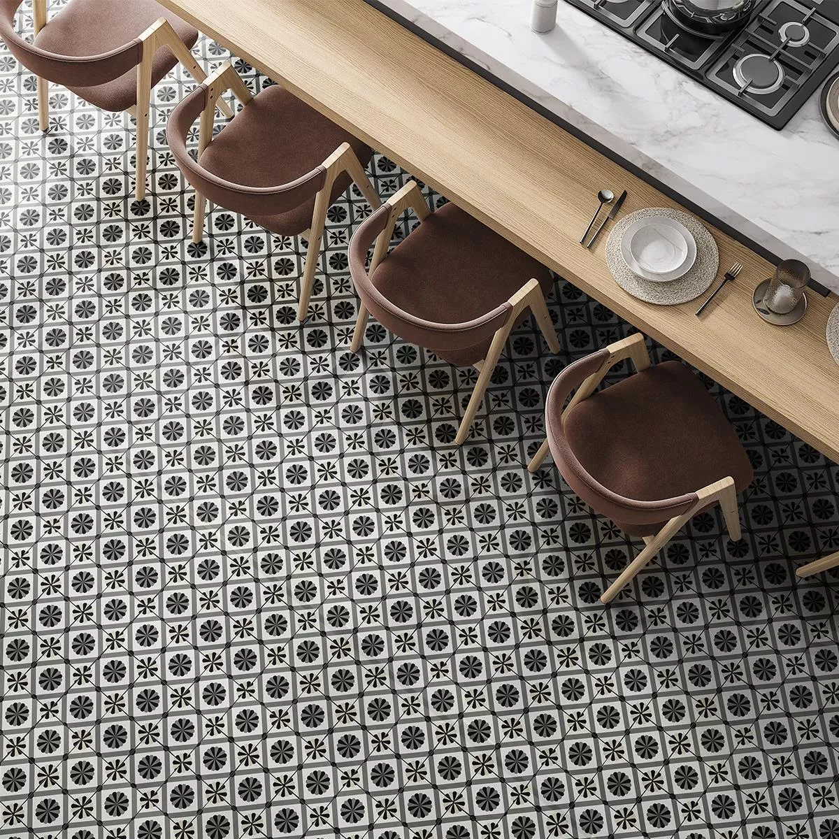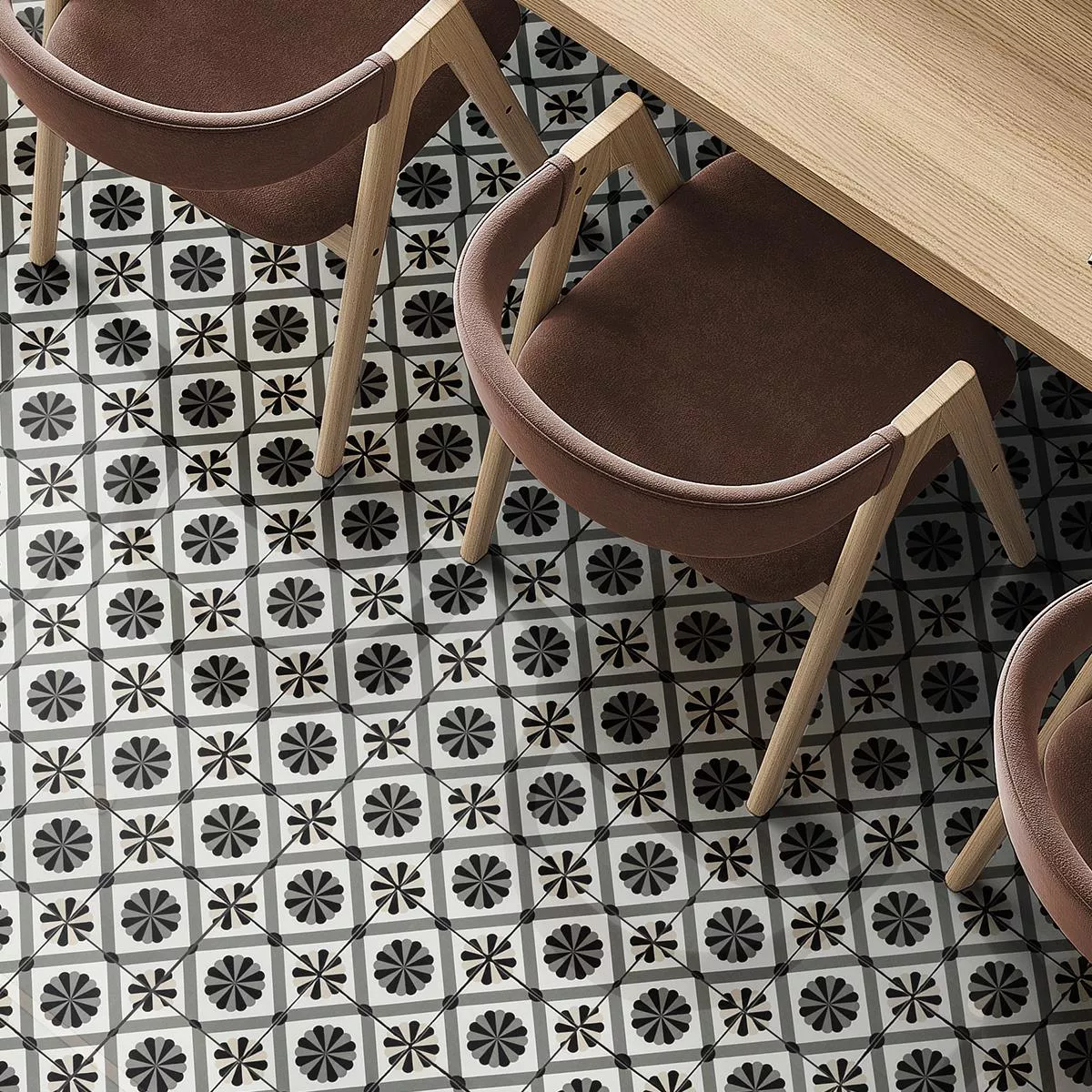 La beauté intemporelle de nos carreaux en grès cérame Ornamenti Arezzo. Ces carreaux de mur et de sol carrés mesurant 13,9x13,9 cm donneront à votre intérieur un aspect floral élégant en gris, beige et blanc. La surface vitrée et mate et une épaisseur de 8 mm offrent non seulement esthétique mais aussi durabilité.