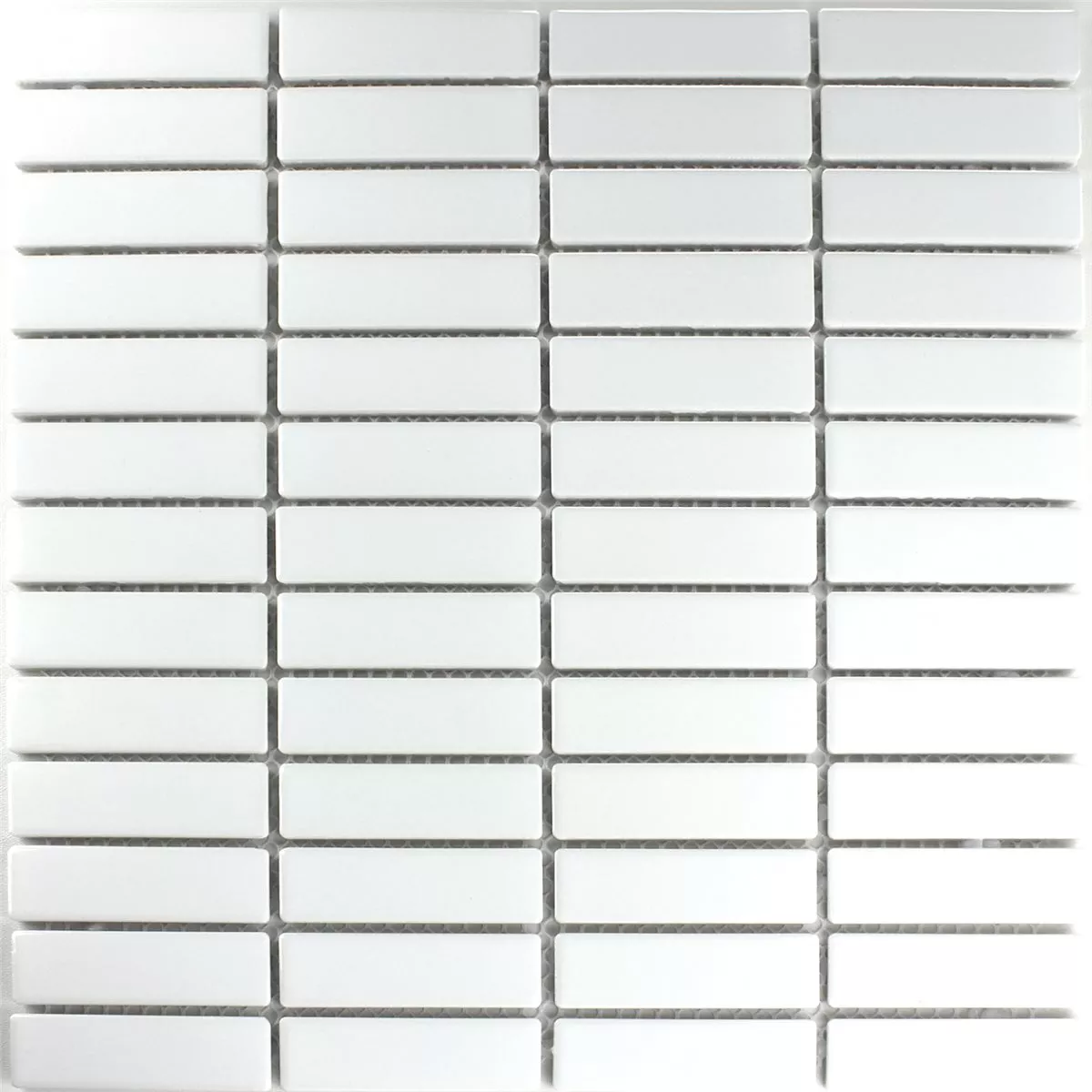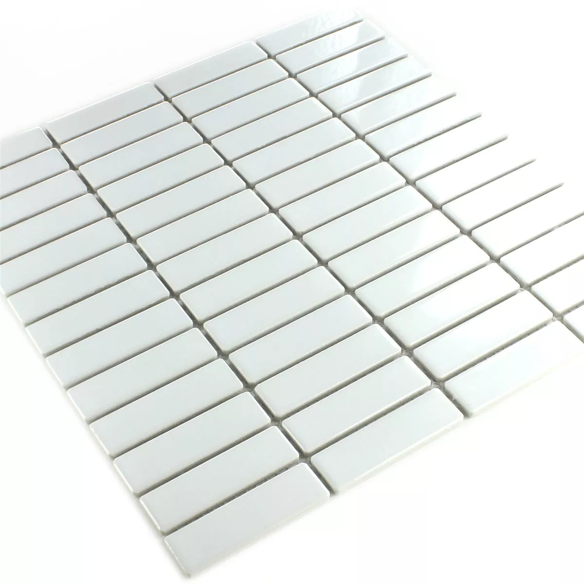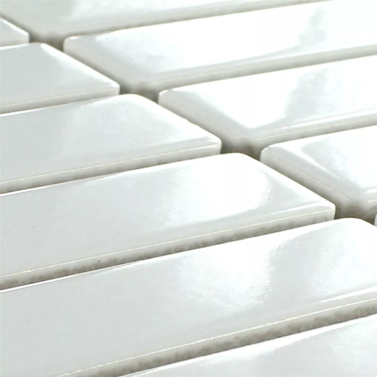 Le carreau de mosaïque en céramique, de couleur blanc uni et finition de surface brillante, a un format mat de 298x318mm et un format de pierre de 21,9x72,8mm. L'épaisseur de chaque pierre est de 0,6 cm.