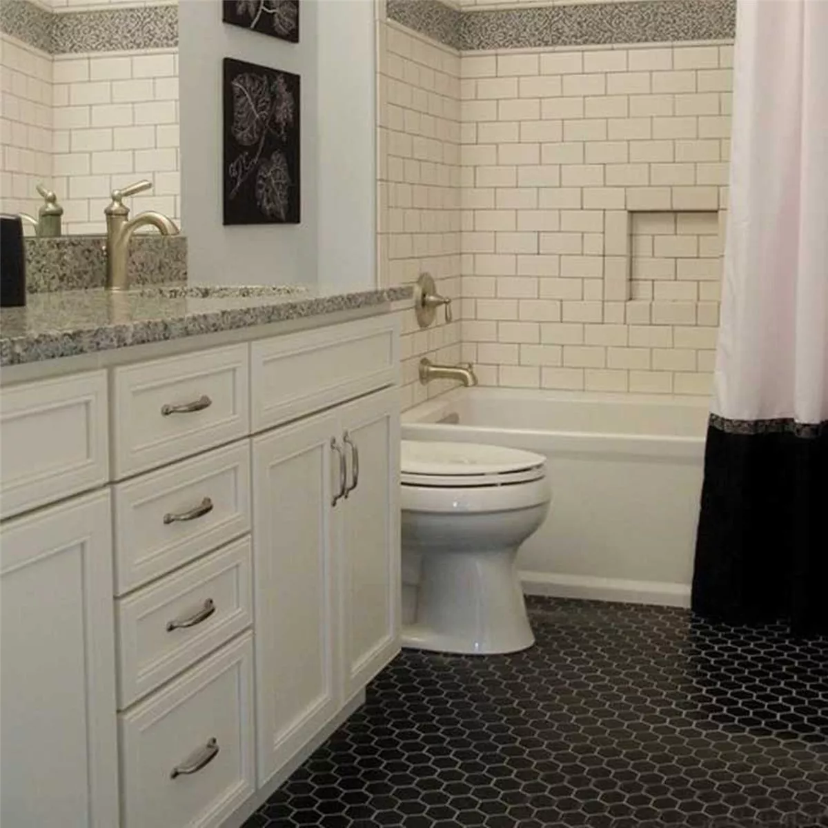 Les carreaux hexagonaux sont souvent utilisés dans les ménages pour concevoir des toilettes, des couloirs, des cuisines et des salles de bains. Ils sont également souvent utilisés comme revêtement mural dans un aspect brique. Les carreaux sont disponibles dans les couleurs noir et blanc et avec une surface mate et brillante. Par exemple, ils peuvent très bien être combinés avec des panneaux d'aspect bois, par exemple derrière une cheminée.
