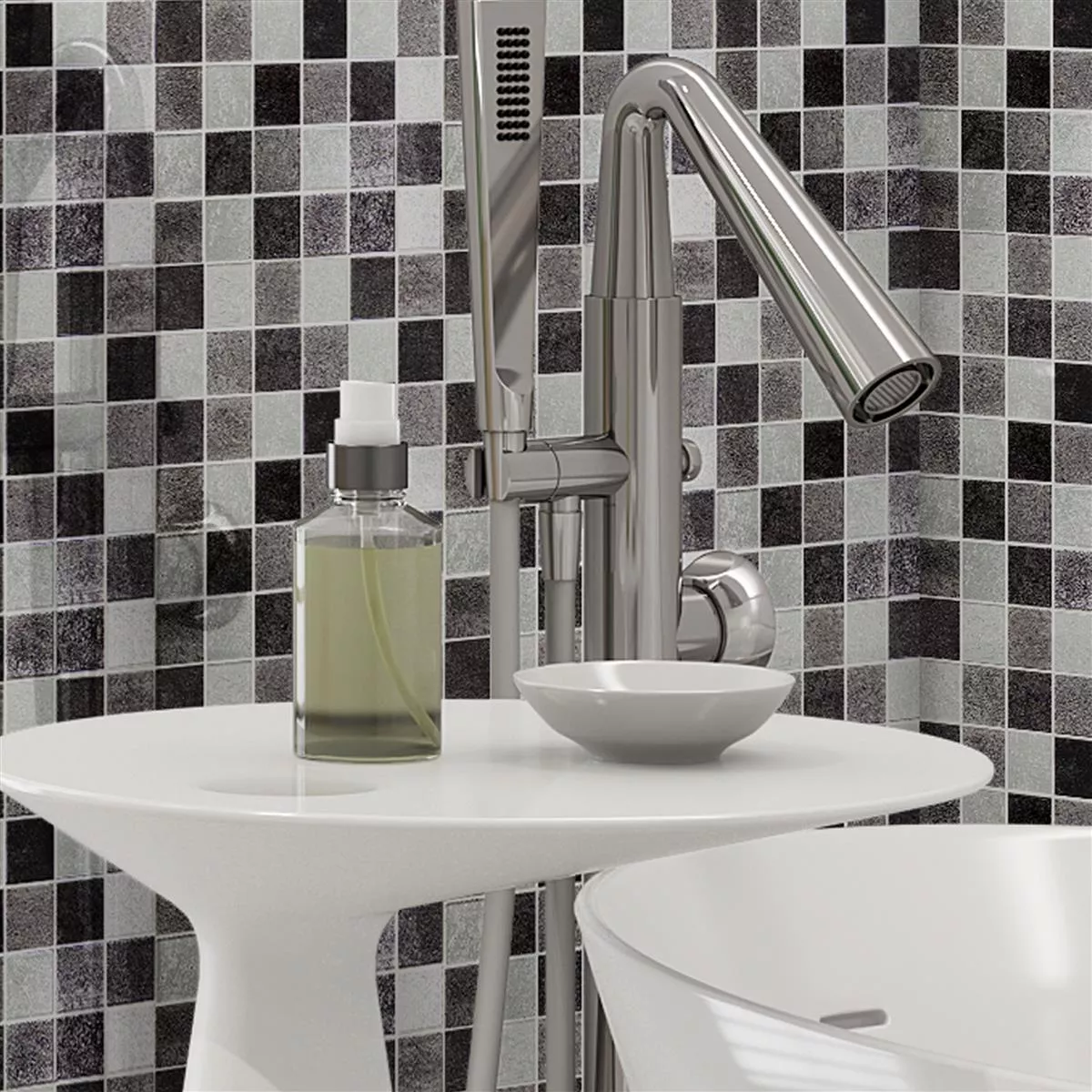 Chaque carreau et chaque mosaïque ont des exigences différentes pour la coupe, la pose et le traitement en raison des caractéristiques individuelles des matériaux et des conditions d'utilisation. Veuillez demander à un expert local une pose correcte et sûre de vos mosaïques ou carreaux. Nous ne sommes pas responsables de l'utilisation non professionnelle et de la fabrication défectueuse des matériaux de construction.