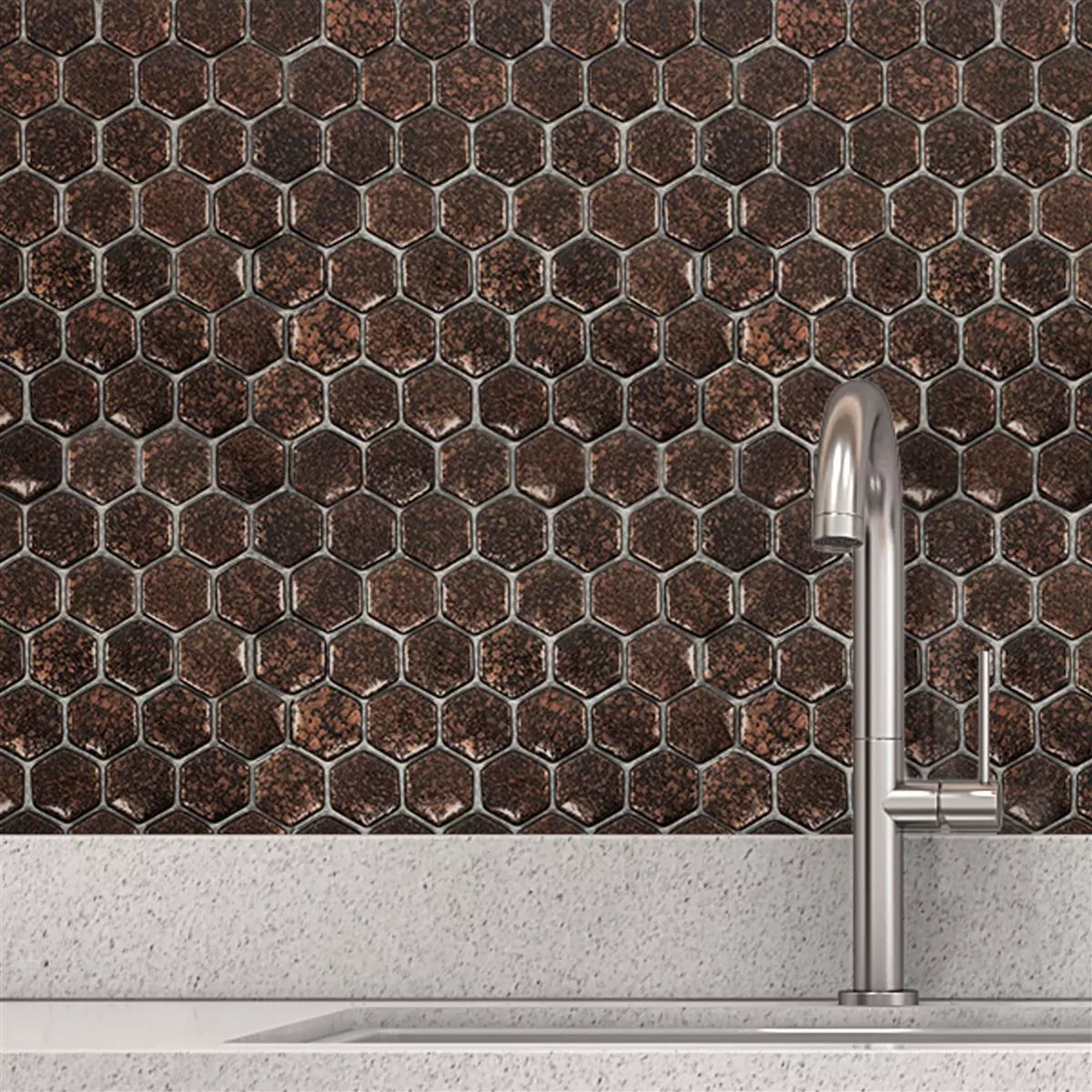 Mosaïque En Verre Carrelage Leopard Hexagone 3D Bronze