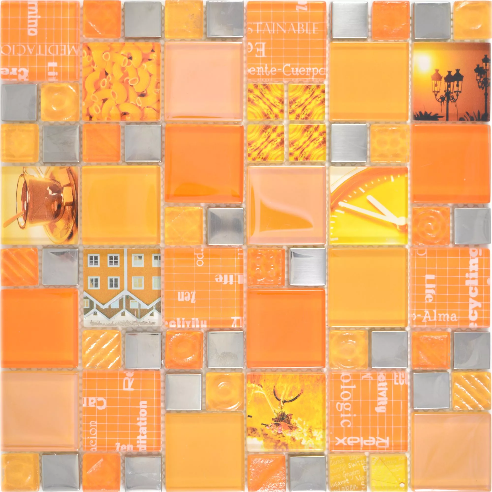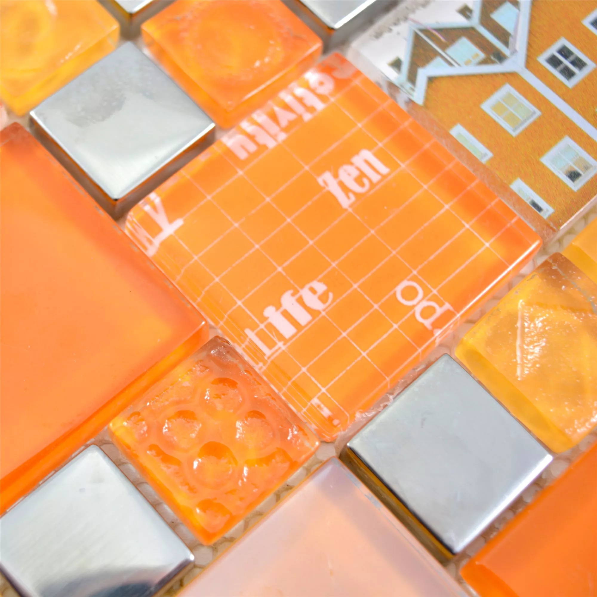 Mosaïque En Verre Carrelage Nemesis Orange Argent