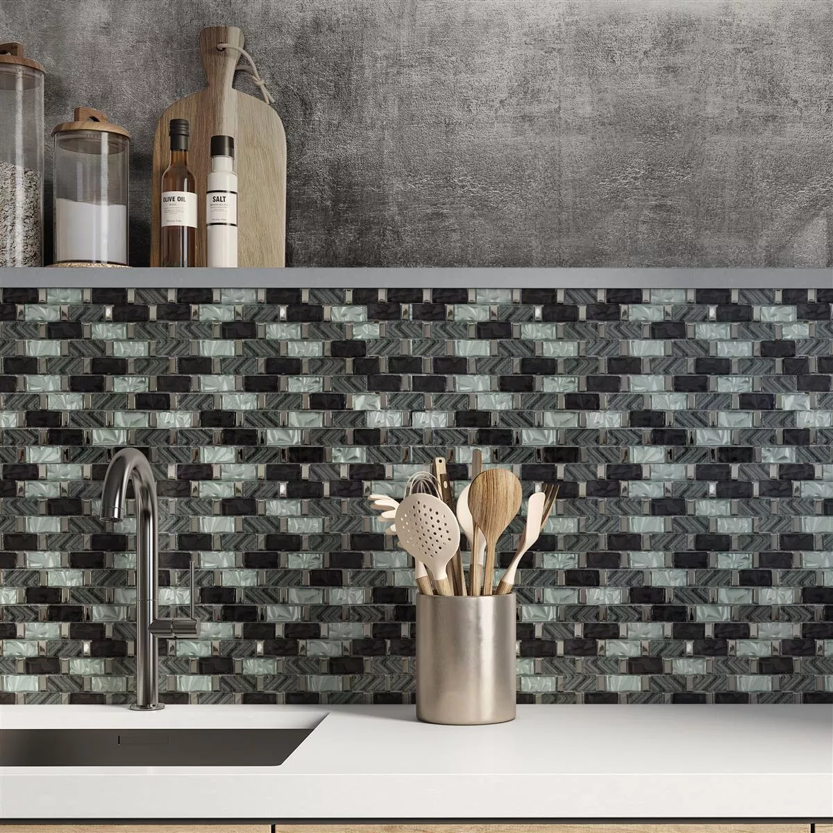 Mosaïque En Verre Carrelage Vancouver Ondulé Gris Bleu Mix