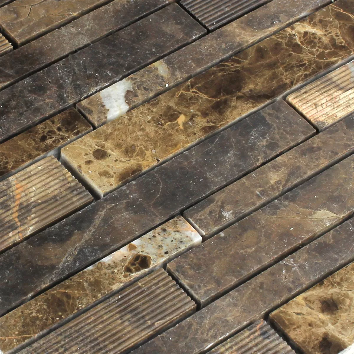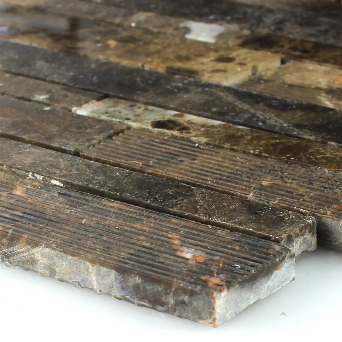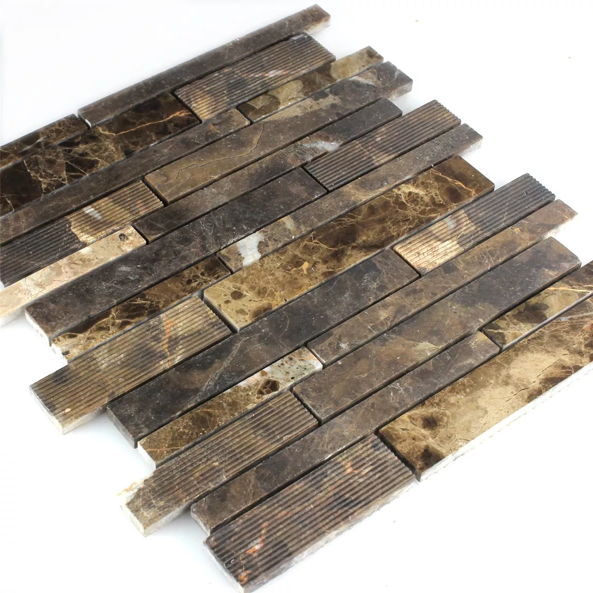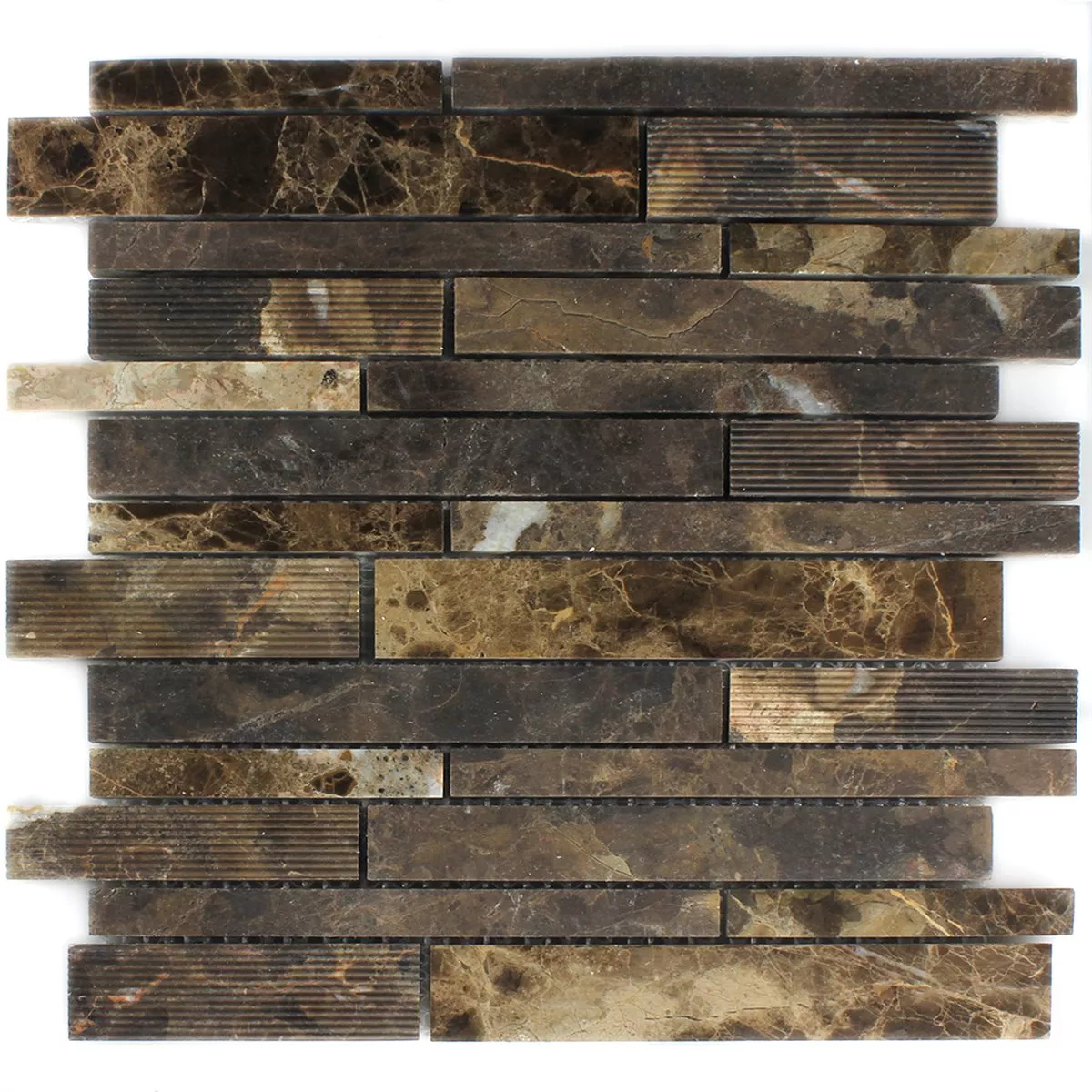 Mosaïque Pierre Naturelle Marbré Bâtonnet Fraisé Poli Brun