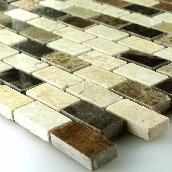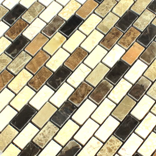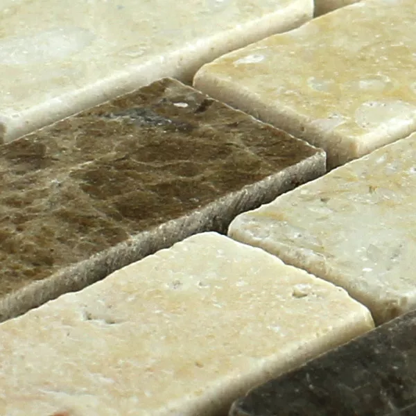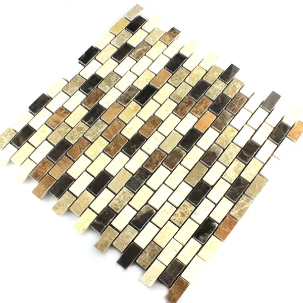 Mosaïque Pierre Naturelle Marbré Brun Beige Poli 15x30x7mm