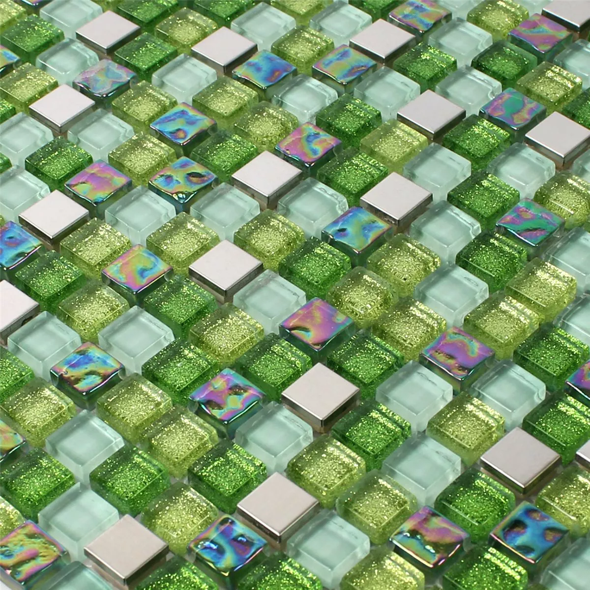 Mosaïque Verre Acier Inoxydable Vert Mix