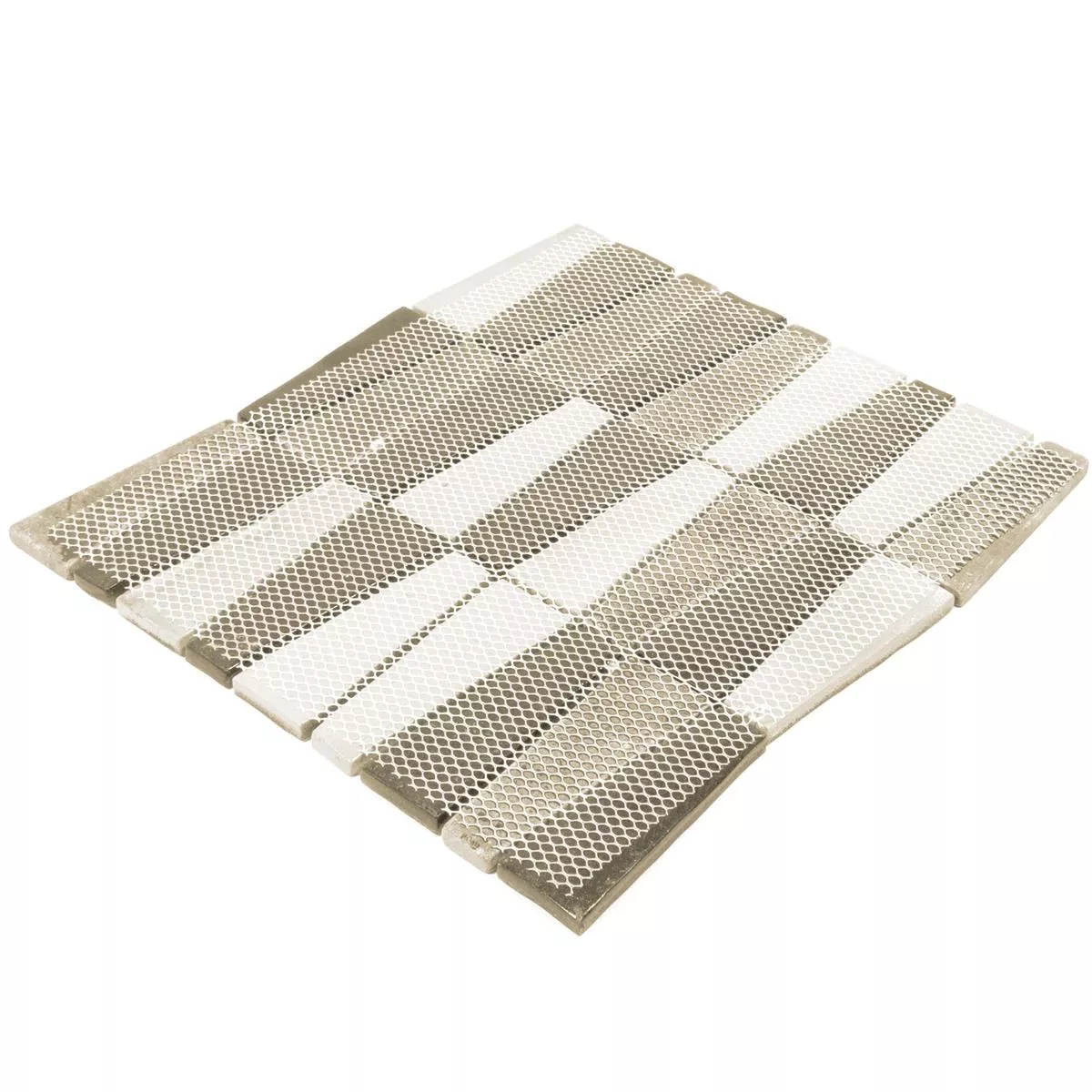 Chaleur naturelle et élégance intemporelle s'associent aux carreaux de mosaïque en pierre naturelle en verre beige marron "Sahara Mix". Ces carreaux de mosaïque exclusifs sont fabriqués à partir d'une combinaison sophistiquée de pierre naturelle, de marbre et de verre dans des tons chauds beige et marron qui apportent un charme cosy et élégant à vos pièces.