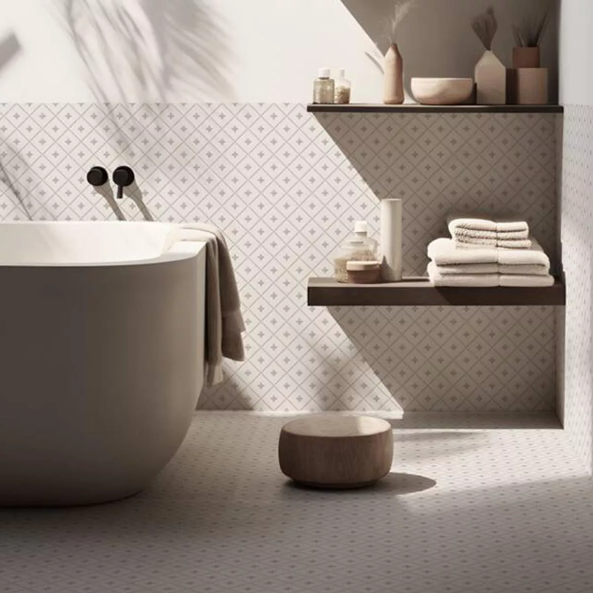 Conception des parois et des sols de douche avec des carreaux Skyros