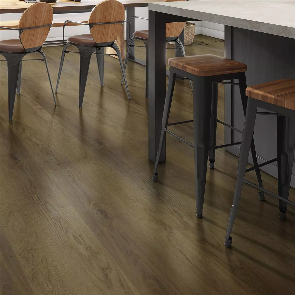 Le revêtement de sol en vinyle adhésif Newcastle dans la couleur ocre chaude allie fonctionnalité et design esthétique. Le matériau vinyle donne au sol un aspect bois naturel, ce qui crée une atmosphère agréable et accueillante dans divers intérieurs.